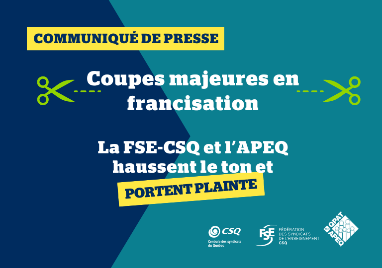 Coupes majeures en francisation – La FSE-CSQ et l’APEQ haussent le ton et portent plainte
